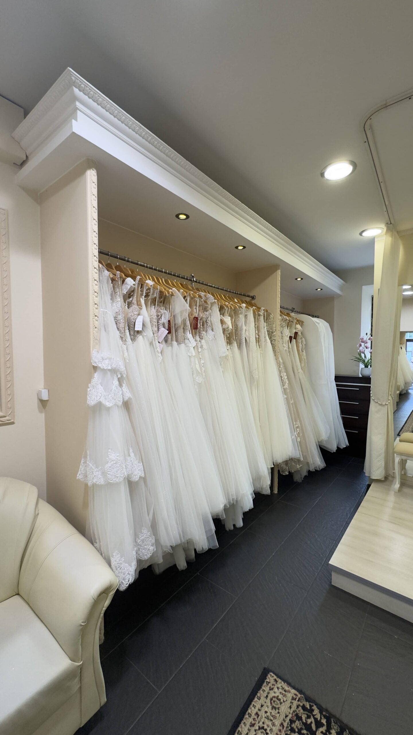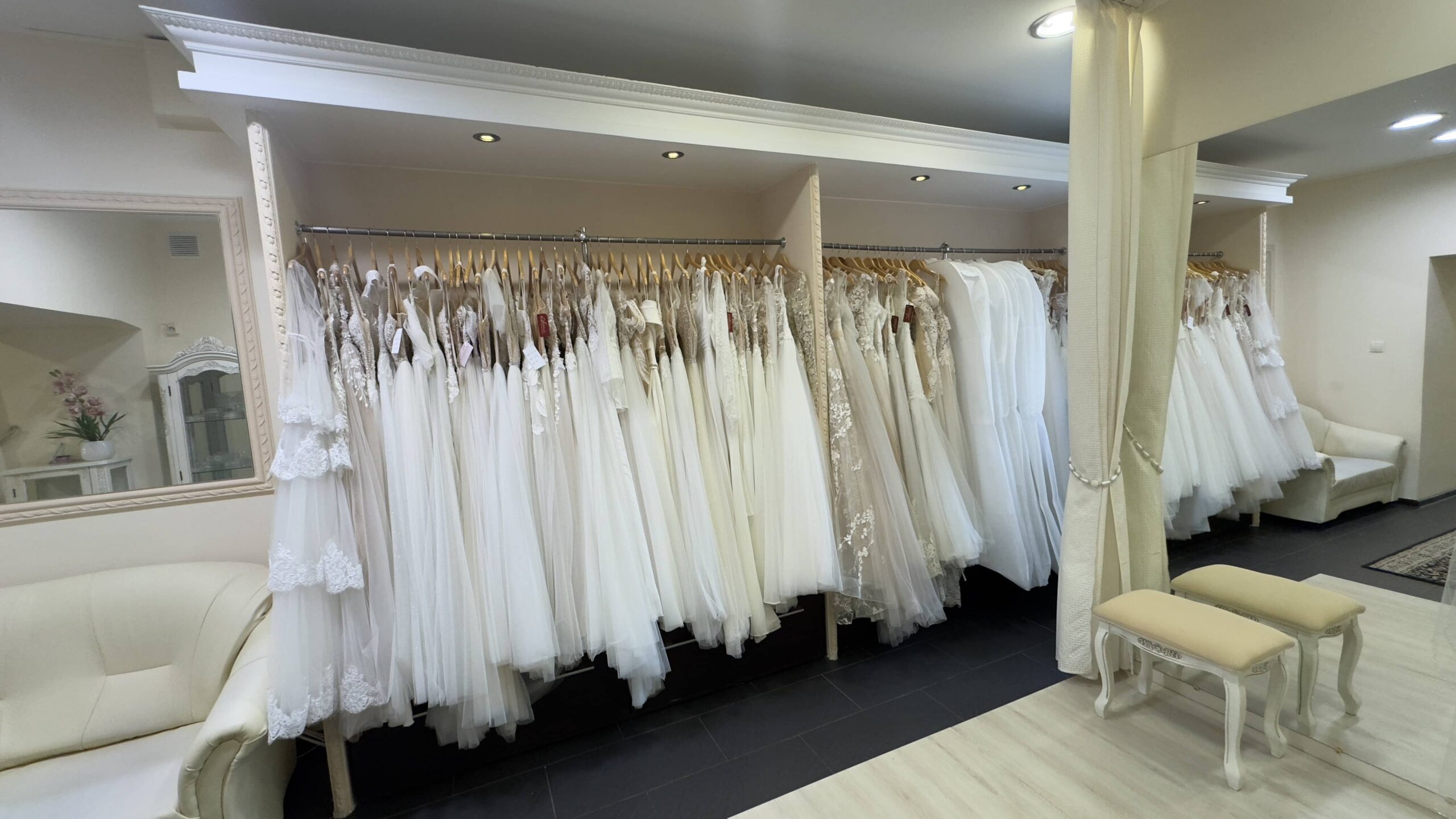 Mamy do zaproponowania ogromny wybór gotowych sukien ślubnych również w rozmiarach trudniej dostępnych jak i szycie na miarę według naszych projektów, projektów klientek oraz wspólnie opracowanych. Na miejscu jest też możliwość doboru odpowiednich dodatków ślubnych komponujących się z sukniami z naszej kolekcji.